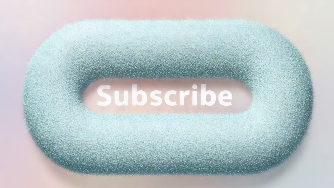 - 3D Fuzzy Blue Subscribe Button Morphing Into Hollow Torus on Pastel Gradient