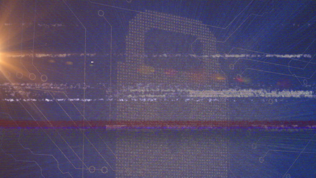 3D Lock Icon on Digital Interface with Data Glitch Video