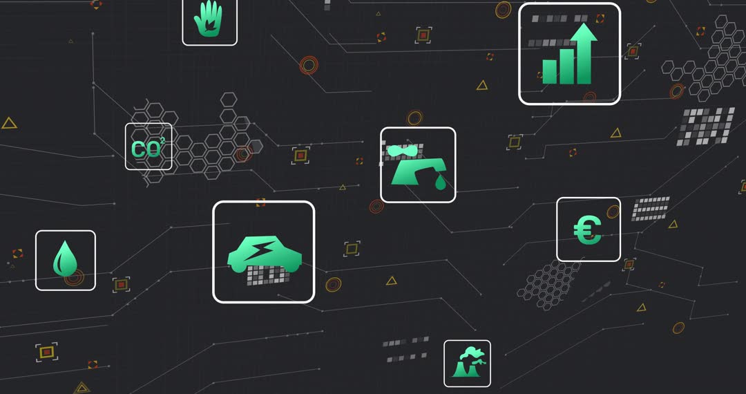 3D Motion Graphics of Green Energy Metrics on Digital Dashboard Video