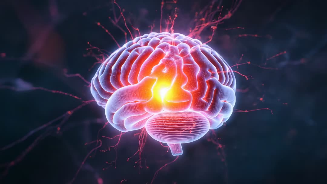 AI Generated Image. The visual depicts a digitally rendered brain with a glowing core, surrounded by neural filaments pulsing signals. It illustrates modern concepts in neuroscience and cognition and is ideal for videos related to brain research, neuroscience advancements, artificial intelligence, and futuristic technology presentations.