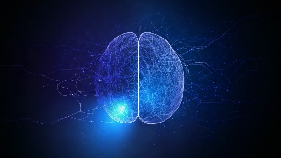 AI Generated Image. The video frame features a morphing 3D wireframe depiction of a brain, dynamically splitting into halves, against a dark, starry background. Luminous lines represent neural filaments, creating a sense of movement and connectivity. It conveys concepts of digital innovation, artificial intelligence, and modern neuroscience developments. The mesmerizing effect makes it ideal for use in presentations, educational resources, or projects related to scientific research, IT, and tech innovation.