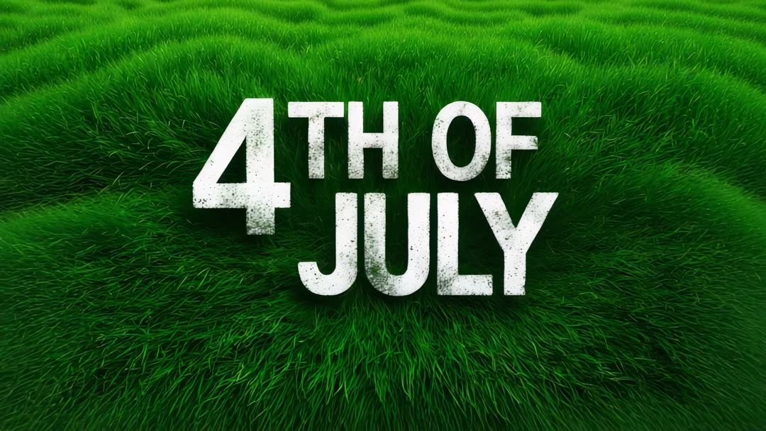 AI Generated Video. This visual displays '4th of July' text layered over a vibrant green grass field, emphasizing the festive spirit of Independence Day. Suitable for holiday advertisements, social media promotions, event invitations, and blogs discussing patriotic themes or outdoor summer celebrations.