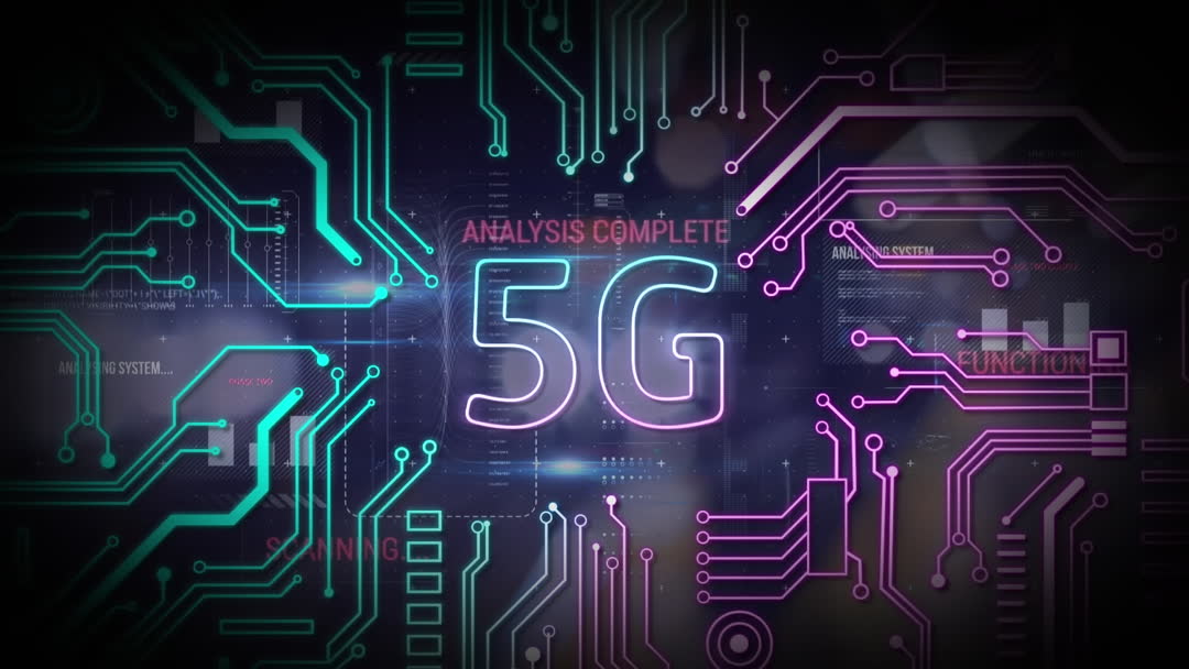 Colorful animation showcasing the connections and circuit of a microprocessor with 5G text, symbolizing innovation in telecommunications and digital connectivity. Ideal for illustrating cutting-edge medical advancements in 5G technology and its integration into modern business applications. Useful for tech presentations, educational videos, and technology-focused marketing materials.