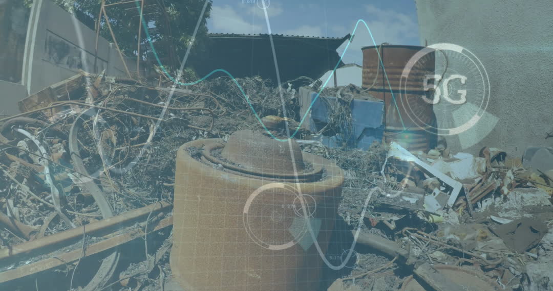 - 5G Technology Over Industrial Scrap Yard Dramatic Perspective