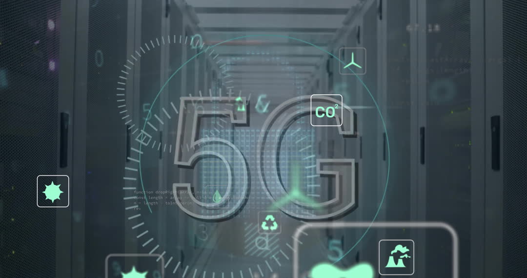 - 5G Technology with Eco Icons in Data Server Room