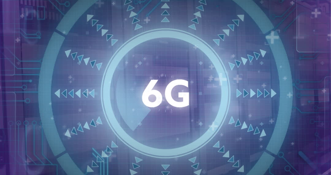 Futuristic graphic showcasing concept of 6G technology. Utilizes illustrations of digital networks and data processing. Ideal for presentations, articles, or content on telecom advancements and digital transformations.