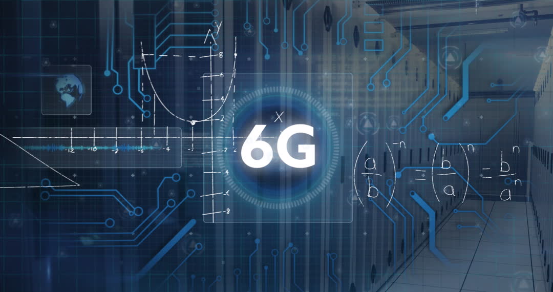 Illustrates futuristic data communication and processing technology emphasizing 6G networks. Suitable for tech-related presentations, articles on future technologies, and educational materials in informatics.
