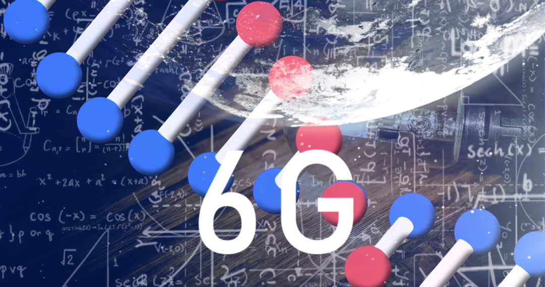- 6G Technology Concept with DNA Strand and Digital Globe