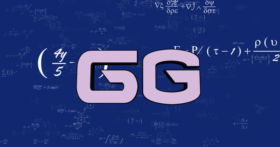 Banner showcasing the concept of 6G technology integration with mathematical representations on a blue backdrop, representing advancements in global networking and research. Ideal for use in tech-related articles, innovation blogs, future technology insights, scientific publications, and educational materials about telecommunications.