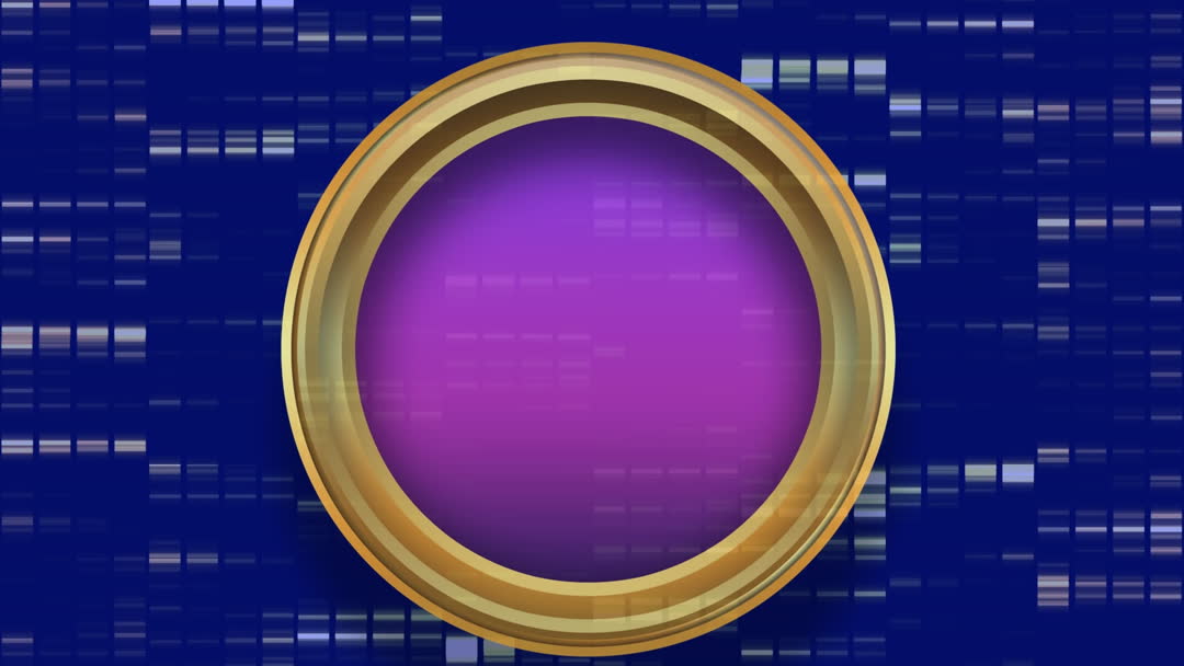 Abstract depiction of a purple circle surrounded by golden layers in front of a dynamic blue backdrop demonstrating digital or technological art concepts. Suitable for backgrounds in presentations, design projects, and creative animations to add a futuristic and artistic vibe.