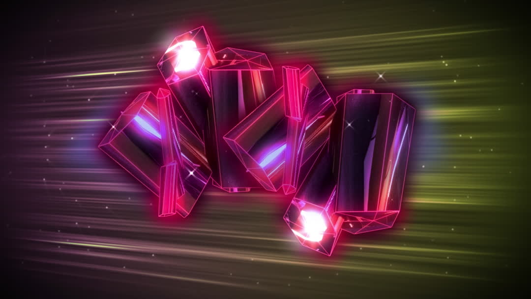 Animated depiction of neon-lit crystals surrounded by dynamic light trails. Ideal for use in futuristic digital interface designs, technology event promotions, or as visual assets in science fiction content. Captures a sense of luminous innovation and vibrant energy.