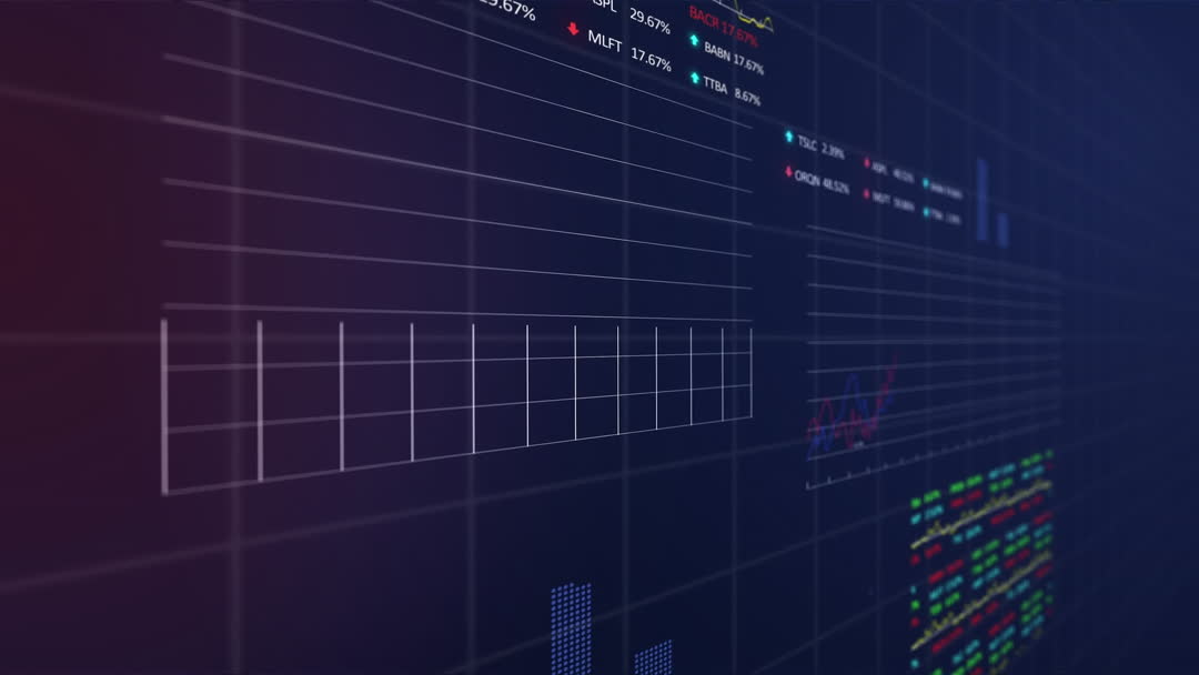 Dynamic depiction of how information is digitally analyzed and represented through abstract graphs and charts. Perfect for illustrating concepts in technology presentations, financial reports, or digital interface introductions. Use in presentations or marketing collaterals to convey themes of innovation or data intelligence.