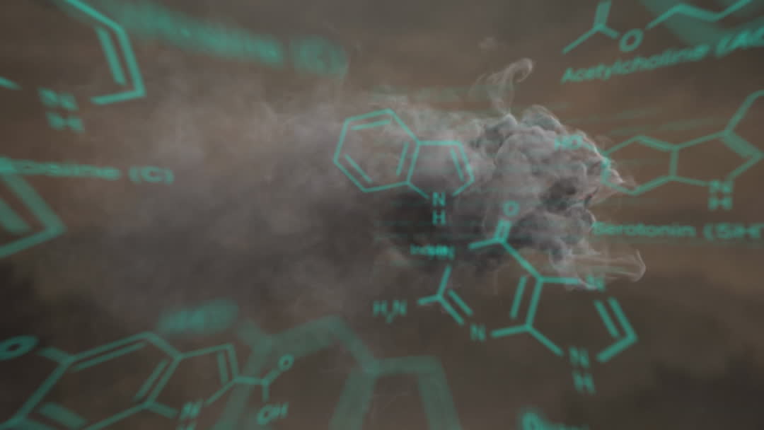 Abstract Animation of Molecular Structures Overlaying Clouds Video