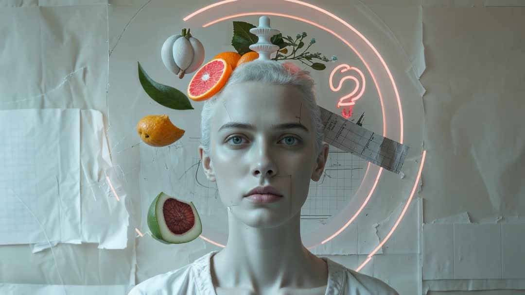 Abstract Art with Fruit and Neon Rings in Creative Space Video