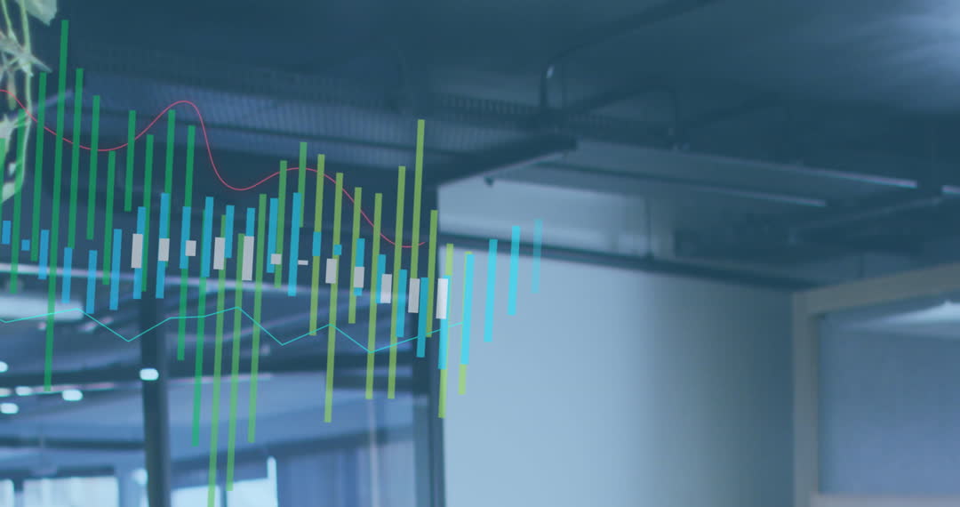 Abstract Business Analytics with Graph Overlaid on Office Background Video