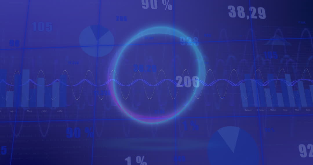 Features animated circle overlaid on graphs and changing numbers, suggesting increasing business growth and data analysis concepts. Useful for presentations, financial reports, business strategy illustrations, and technology-focused content to convey innovation and dynamism in data reading.