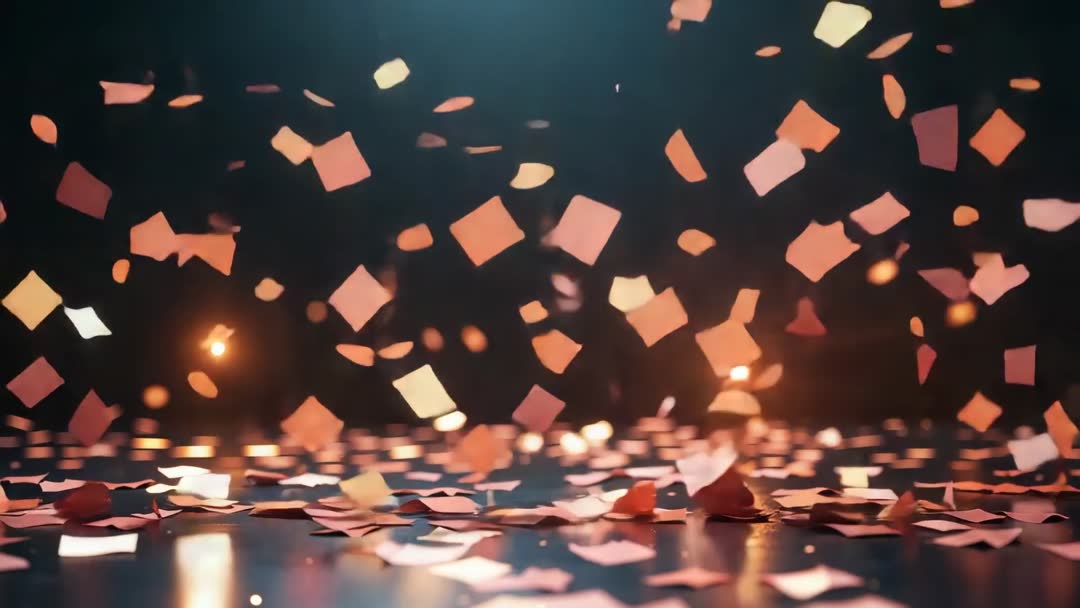 - Abstract Celebration Falling Confetti on Stage with Warm Spotlights