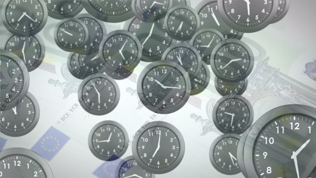 Abstract Clocks Overlaying Currency for Business and Financial Themes Video