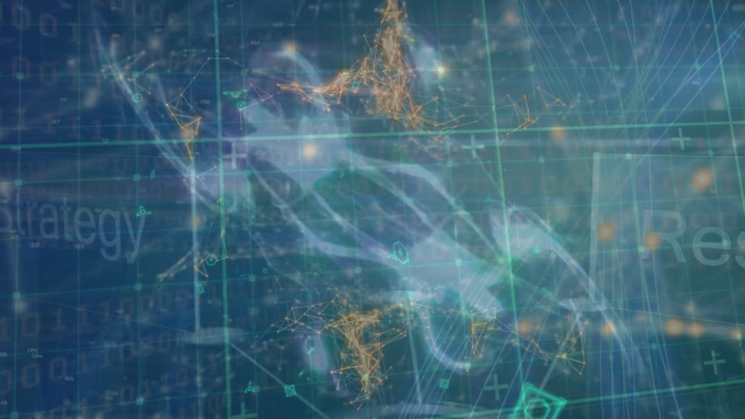 Visual representation of modern digital connections showing abstract networking concepts overlaying text about business strategies. Ideal for illustrating concepts of global communication, technology, big data, and innovative business strategies, this design can be utilized in presentations, digital media content, or technology-inspired creative projects.