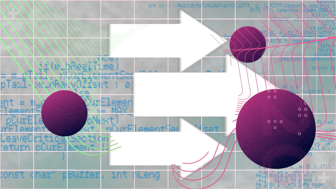 Digitally generated animation features abstract elements like spheres and arrows overlaid on digital code. Made popular on technology websites, this content is effective for illustrating data processing, software development, or futuristic innovation aspects. Ideal for use in tech-related presentations and digital projects.