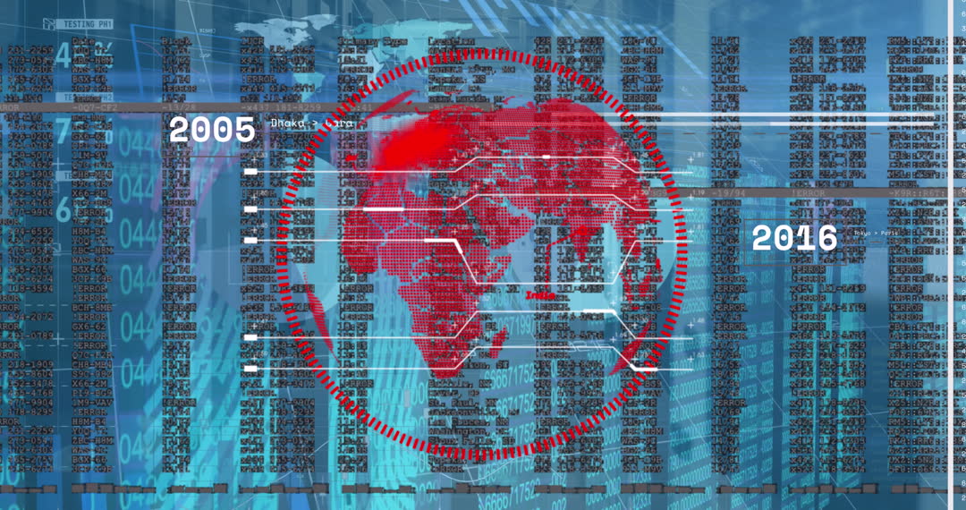 - Abstract Data Processing Technology with Spinning Globe Overlay