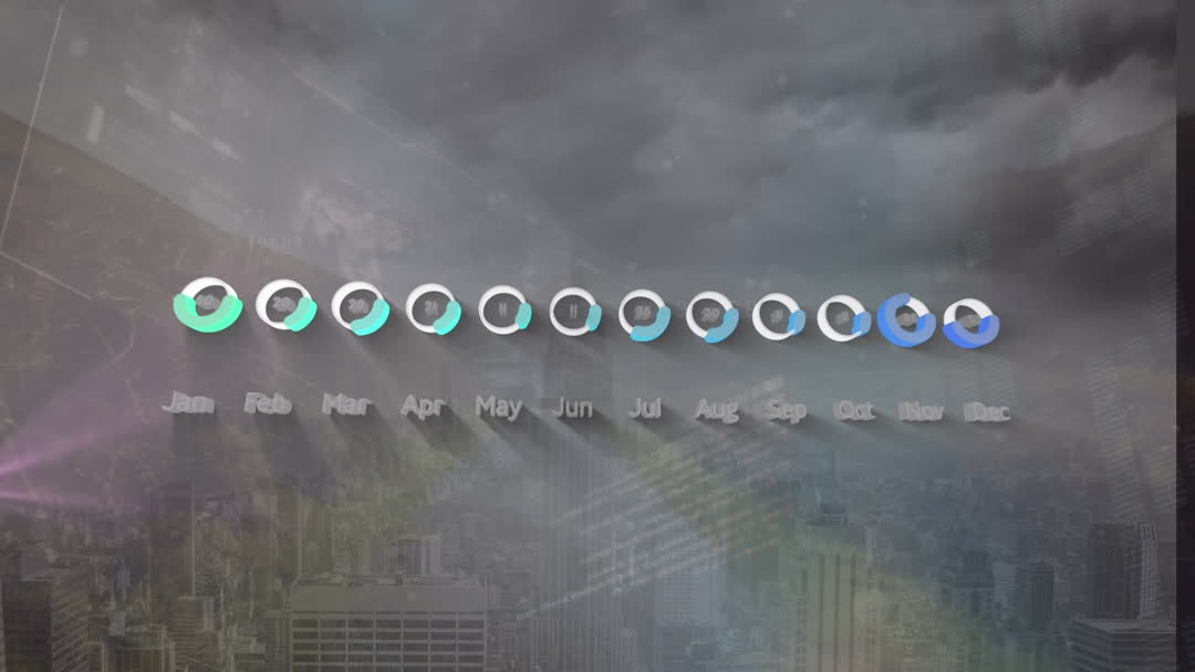 Dynamic animation showing data processing activity, overlayed on cityscape suggesting global business themes. Useful for presentations on technology, digital transformations, or statistics. Applies to content illustrating modern urban business contexts.
