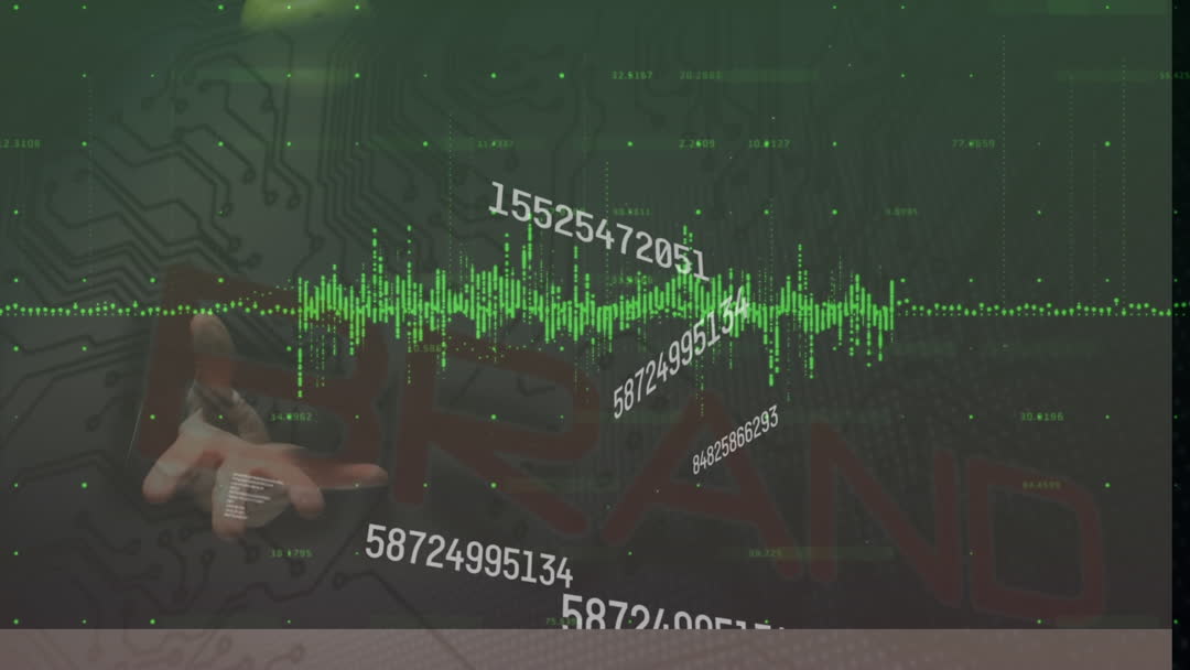 Dynamic visualization of data processing combines symbolic elements like numbers and graph overlays with conceptual hints of a hand and abstract ideas of 'brand' to illustrate connections between technology and business. This visual can be used in presentations or articles about data analysis, technological innovation, or business intelligence, capturing a high-tech ambiance with symbolic estimations promoting forward-thinking progress.
