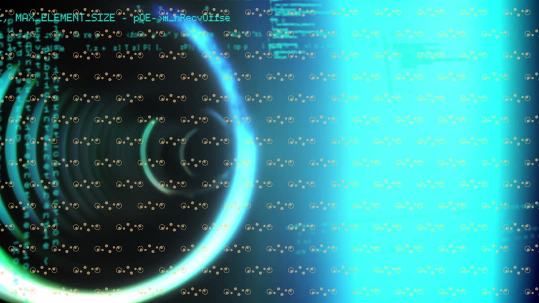 Abstract digital circles over a stream of data, conveying concepts of tech and network communication. Useful for presentations about technology, software development, or data processing visuals.
