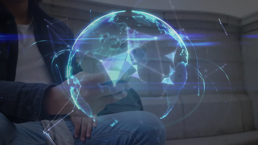 - Abstract Digital Communication with Holographic Globe Over Smartphone