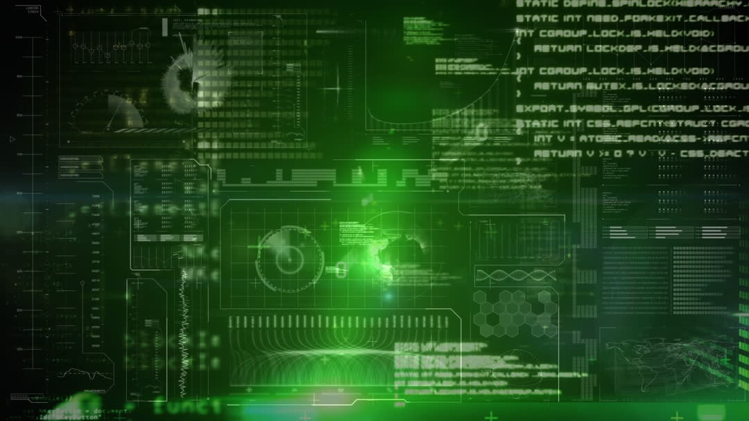 Abstract digital design featuring data processing animations in vibrant green hues. Visual elements suggest themes of computer programming, cybersecurity, and technology. Useful for illustrating concepts related to data analysis, network security, and digital development in presentations, articles, or media assets focused on technological advances.