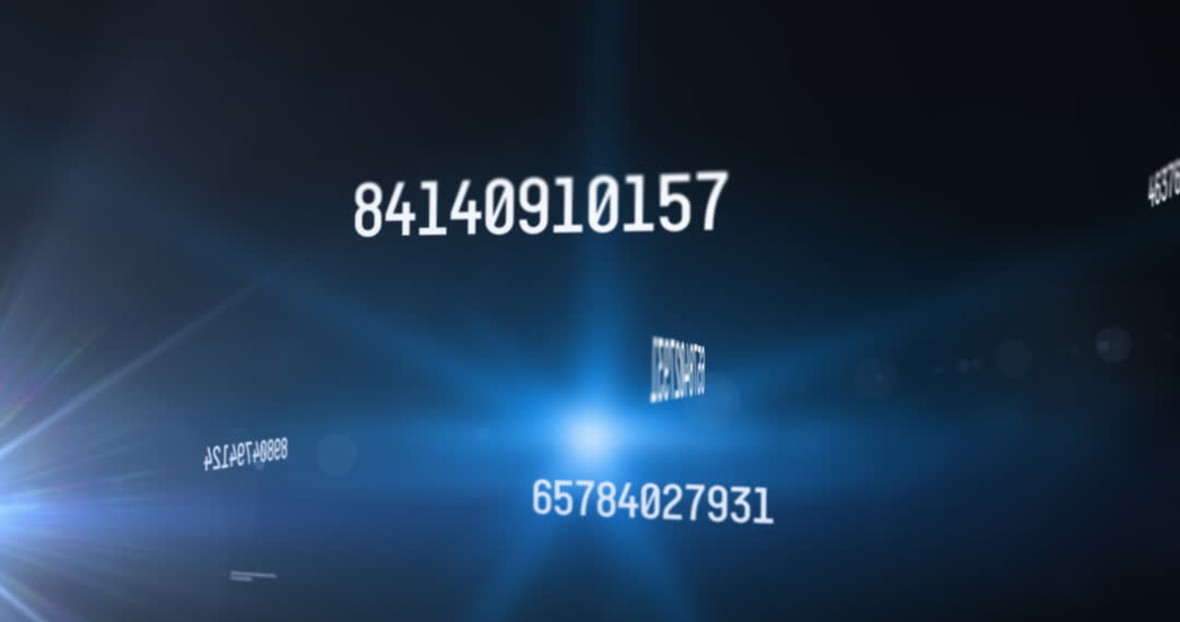 Animation depicting floating numbers on a black background with a blue illuminated spot. Captures the essence of digital technology and financial interfaces. Suitable for presentations, technology demos, or visually illustrating data concepts in workshops or seminars.