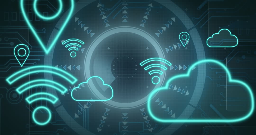 Abstract design showcases cloud and Wi-Fi symbols integrated into a digital interface, suggesting themes of modern technology and connectivity. This is ideal for illustrating concepts related to cloud computing, data processing, and virtual networking in blogs, presentations, or tech-related content.