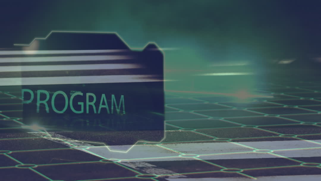 This concept art shows an abstract digital interface with the word 'program' glowing over a grid-like structure, conveying ideas of technology and modern business innovation. Perfect for illustrating technological advancements, software development, or digital presentations in marketing materials or educational content.
