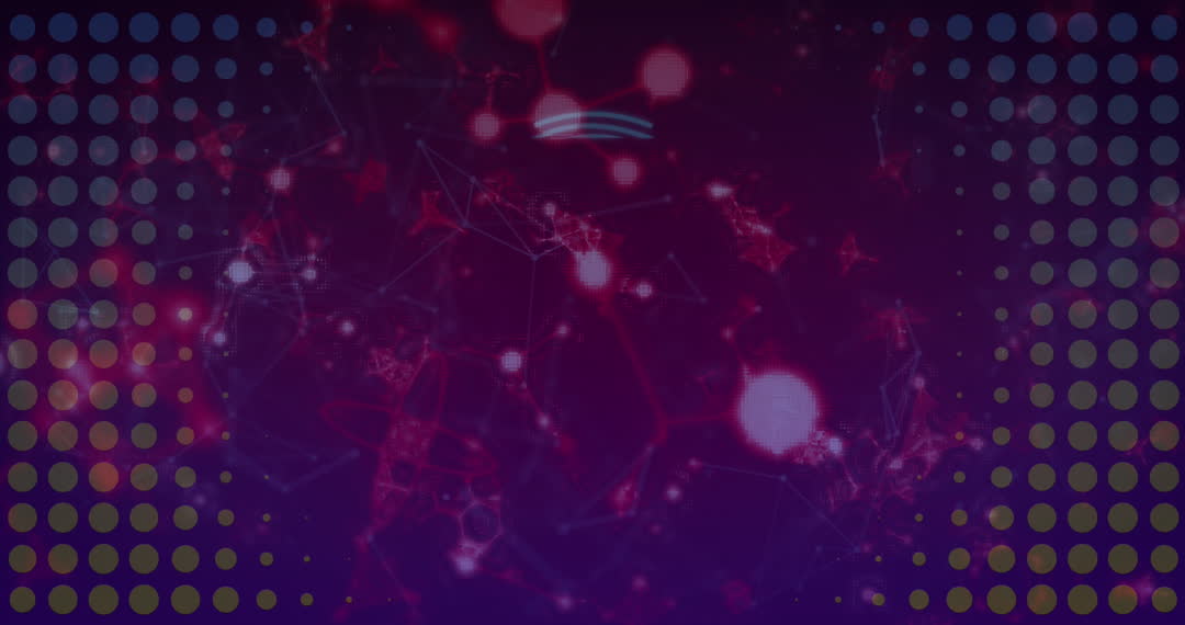 An abstract depiction of a digital network set against a dark backdrop with dynamic red patterns and glowing circles. This visualization is ideal for technology-themed projects, science fiction artwork, and as a conceptual background for presentations. Its modern design suits computer graphics interfaces and promotional materials for tech industries.