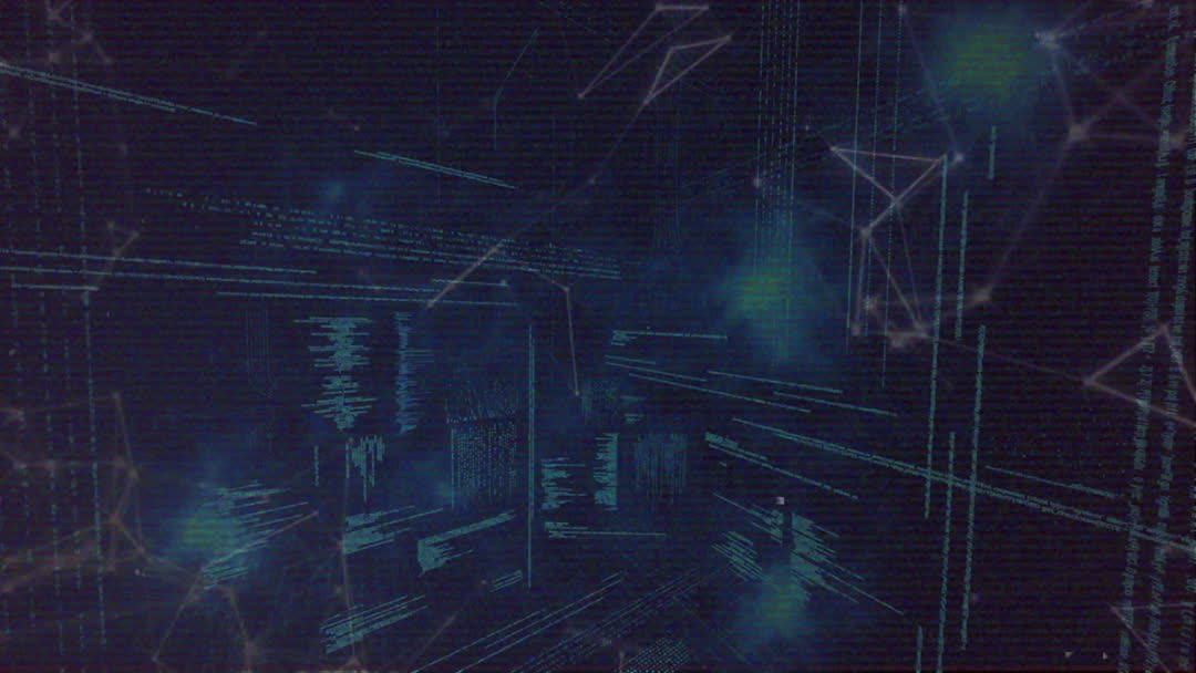 A futuristic display of abstract patterns and network connections illustrating data processing and global computing. Ideal for representing themes of technology innovation, cybersecurity, or digital infrastructure, especially in presentations or media related to tech development and data science.