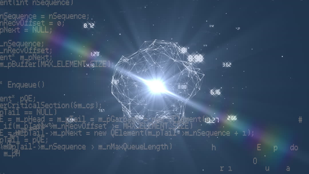 Digital network connections with processing code and lighting effects present futuristic technology concept. Highlightes global connectivity and artificial intelligence fields. Suitable for technology presentations, innovation showcases, or software development themes.