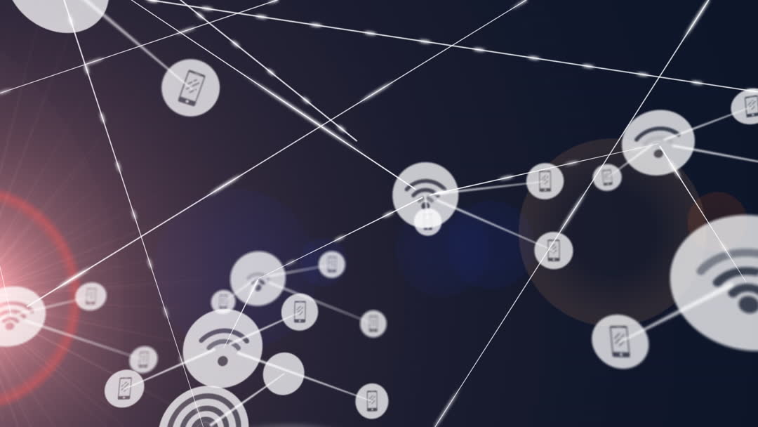 This visual abstract showcases a digital network with interconnected technology icons set against a dark background. Illustrating the theme of global connectivity and data exchange, this animation is ideal for use in tech-related presentations, websites about wireless communication, or articles discussing digital transformation and global networking. The dynamic composition makes it suitable for backgrounds and modern stock graphics.