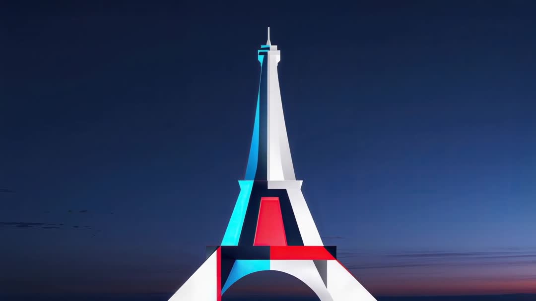 Abstract Eiffel Tower Embodying French Flag at Dusk Video