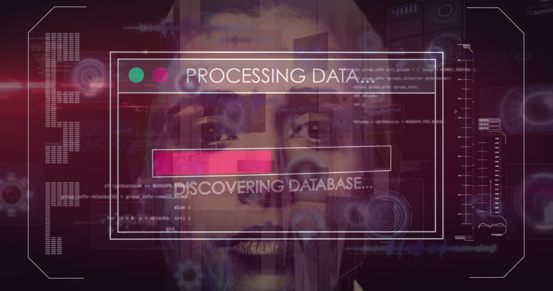 Technology animation depicts facial recognition and data processing themes with abstract touches, suitable for illustrating concepts in cybersecurity, digital interfaces, artificial intelligence, and technology advancements. Useful for presentations, educational content, tech-themed marketing, and publications discussing privacy or high-tech innovations.
