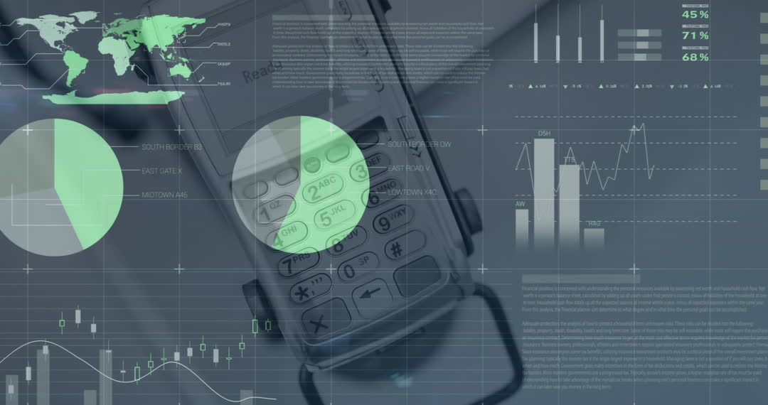 This abstract collage showcases a blend of old cellphone technology and modern digital charts over a backdrop of euro banknotes. The video conveys themes of finance, commerce, and technological advancement. It is suitable for articles about international finance, economic trends, or the evolution of financial technology.