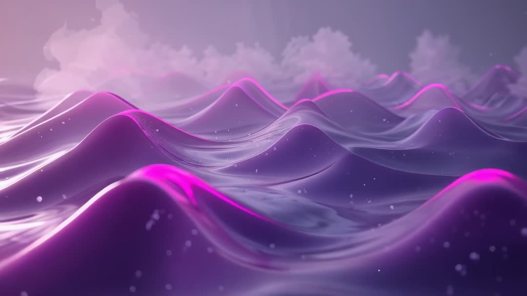 AI Generated Video. This digital artwork features purple waves with striking neon pink highlights, giving a sense of fluidity and dynamism. Drifting white particles add depth and interest, creating a futuristic, vibrant look. Suitable for creative projects such as backgrounds, digital advertisements, and artistic mediums exploring modern digital aesthetics.