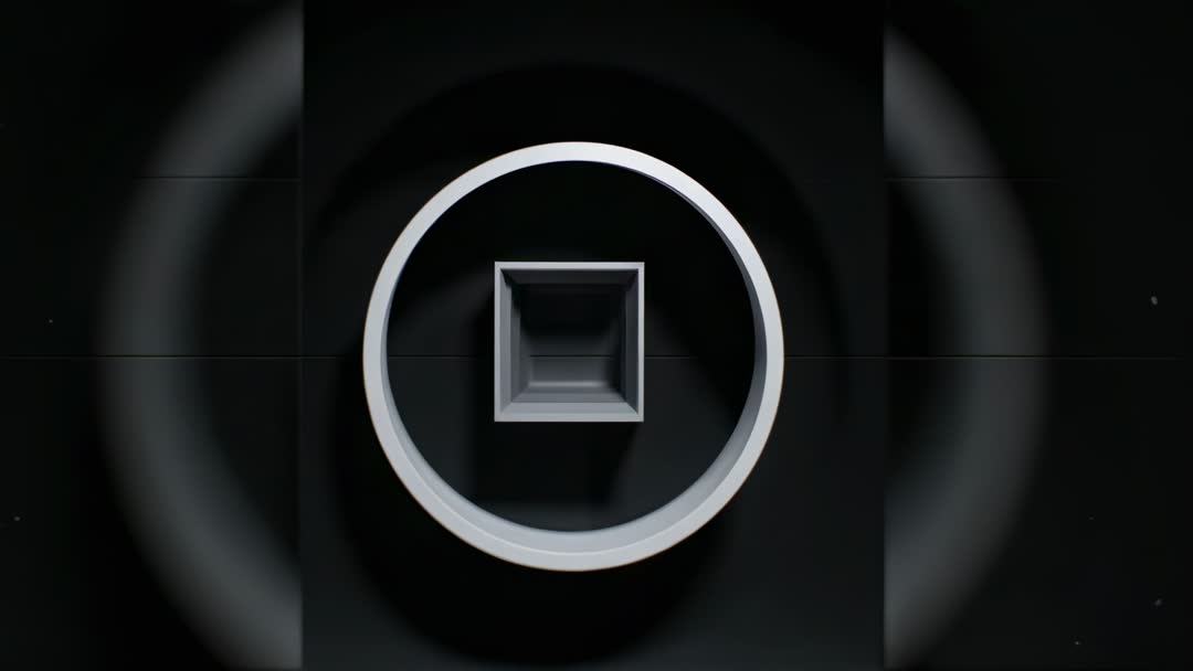 AI Generated Image. Abstract visual animation features dark void shifting into metallic concentric ring with stepped square recess. Perfect for illustrating futuristic themes, showcasing technology concepts or for background use in creative design projects and digital art installations.