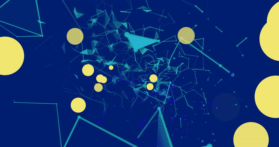 This digital art features an abstract animation with colorful shapes, circles, and lines moving dynamically against a dark background. Ideal for use in design projects, presentations, or as dynamic video backgrounds to add a futuristic and creative touch.