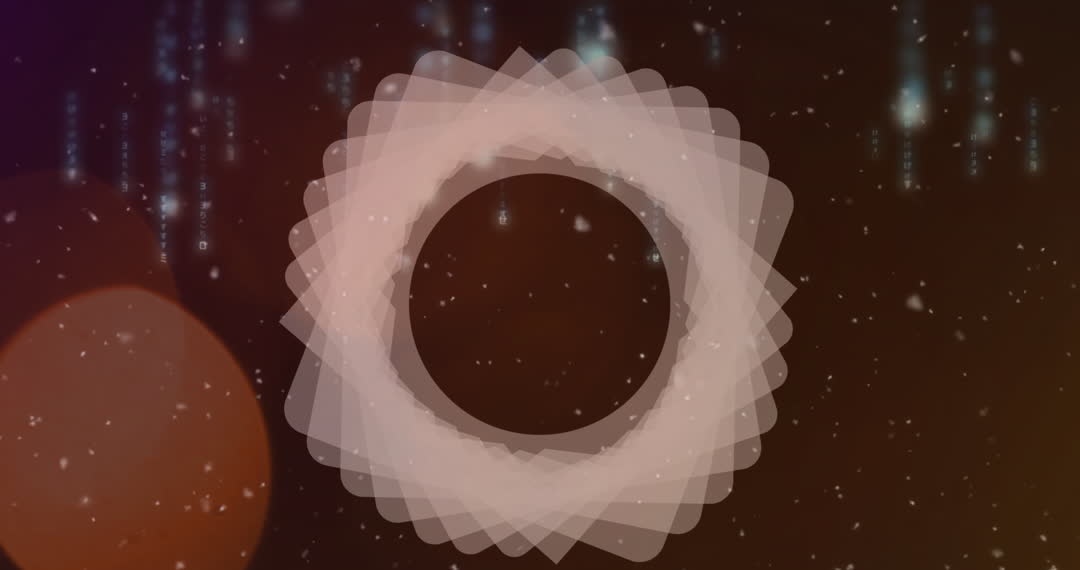 This visual features an abstract animation consisting of geometric shapes set against a backdrop of data processing graphics and falling snowflakes, creating a dynamic contrast between the digitized world and natural elements. Ideal for backgrounds in technology presentations, digital media, or graphic design projects aimed at showcasing modern and futuristic design concepts.
