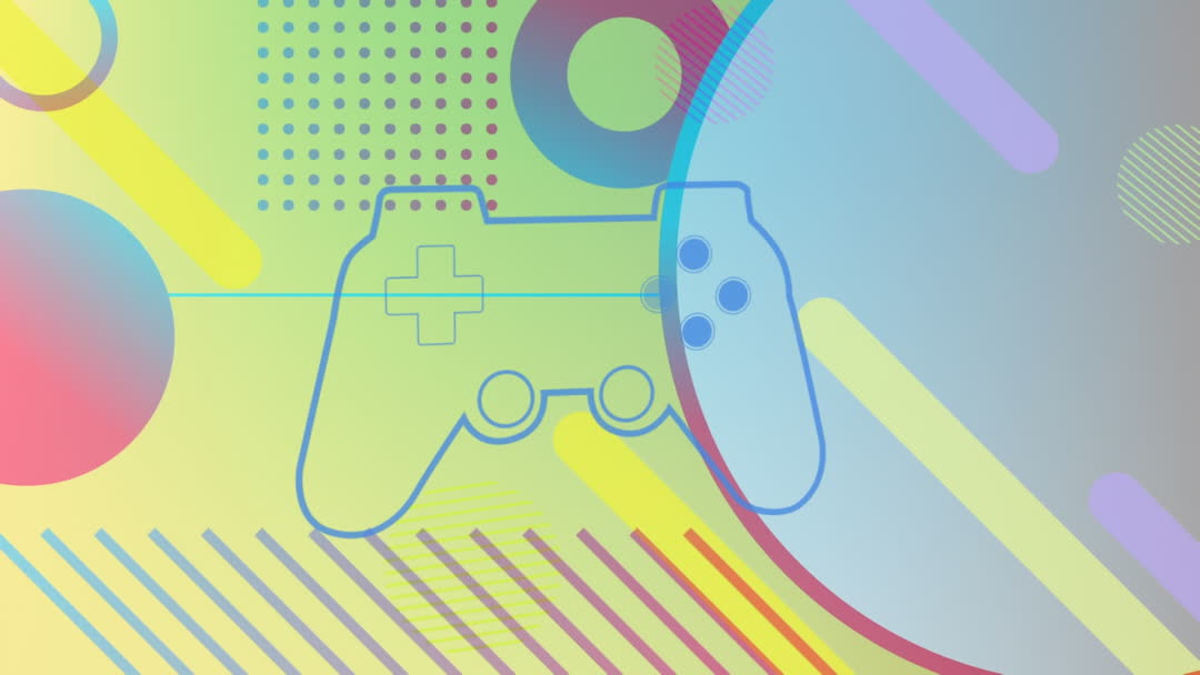This video displays a vibrant composition of pastel colors with geometric patterns, including a gamepad icon symbolizing gaming and digital technology. The design combines circles, lines, and modern motifs, appealing to themes of digital art and interface design. Ideal for use in graphic design projects, advertising for technology events, or as a visually appealing backdrop for presentations related to video games and digital trends.