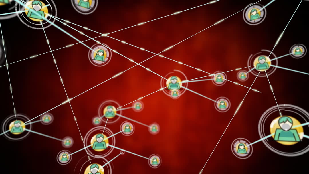 The visual depicts interconnected nodes on a vibrant red backdrop, each symbolizing figures as part of a vast global social media network. This representation immerses viewers in the concept of digital communication, portraying how individuals are interacting across the globe through technology. This graphic is ideal for presentations on technology advancements, future of communication, digital marketing strategies or discussions on virtual networking platforms. Its dynamic color scheme and interconnected theme make it suitable for both educational materials and professional contexts.