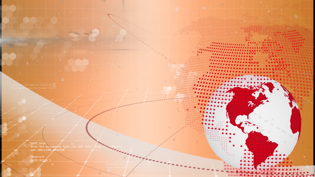 This dynamic visual features an abstract globe and technological elements on an orange background, ideal for enhance news presentations or emphasize concepts related to global networks, technology, and data processing. It can be used as a background in news platforms, tech conferences, and educational videos focusing on digital transformation and global communication.