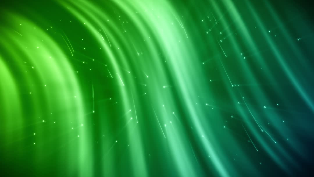 This abstract background features a dynamic flow of green neon waves with sparkling light particles. Suitable for technological themes, creative design projects, or as a modern wallpaper. Ideal for enhancing presentations, websites, or digital interfaces with an engaging and vibrant look.