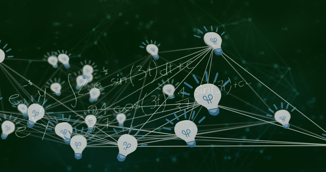 Abstract light bulbs connected by lines and mathematical equations faintly appearing in the background. Ideal for conveying concepts of innovation, ideas generation, and the collaborative process. Perfect for educational institutions, creative industries, and technology firms. Use in presentations about innovation, brochures for educational programs, or tech leader discussions.