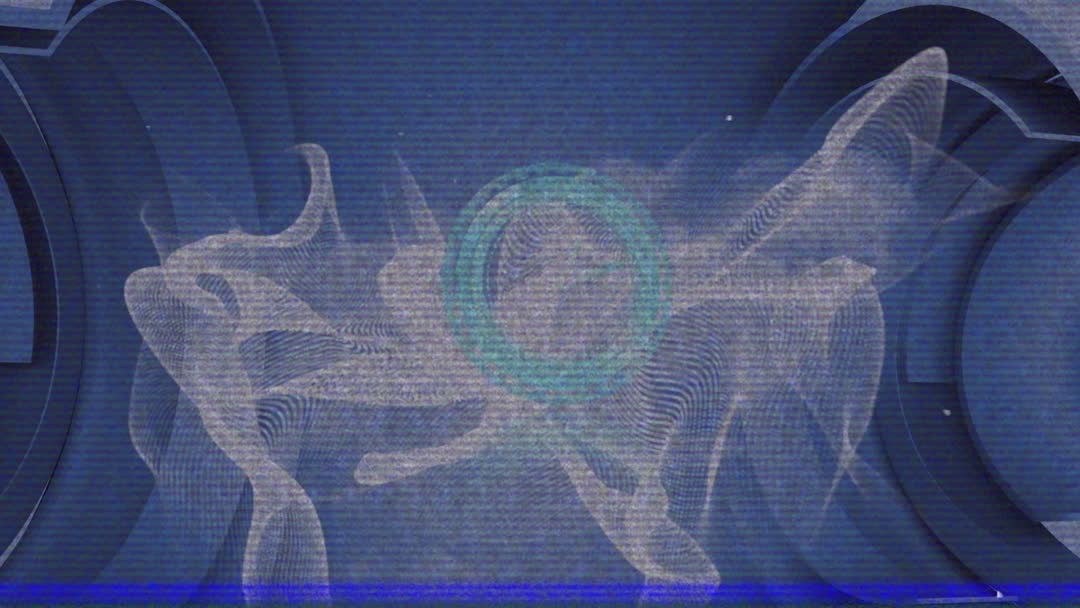 Abstract linear design incorporates a faint clock video on a textured blue background. The intertwining white lines form dynamic shapes, adding a modern touch to digital artistry. Ideal for use in graphic design projects, tech-related visuals, or as a modern artistic piece in digital media content.